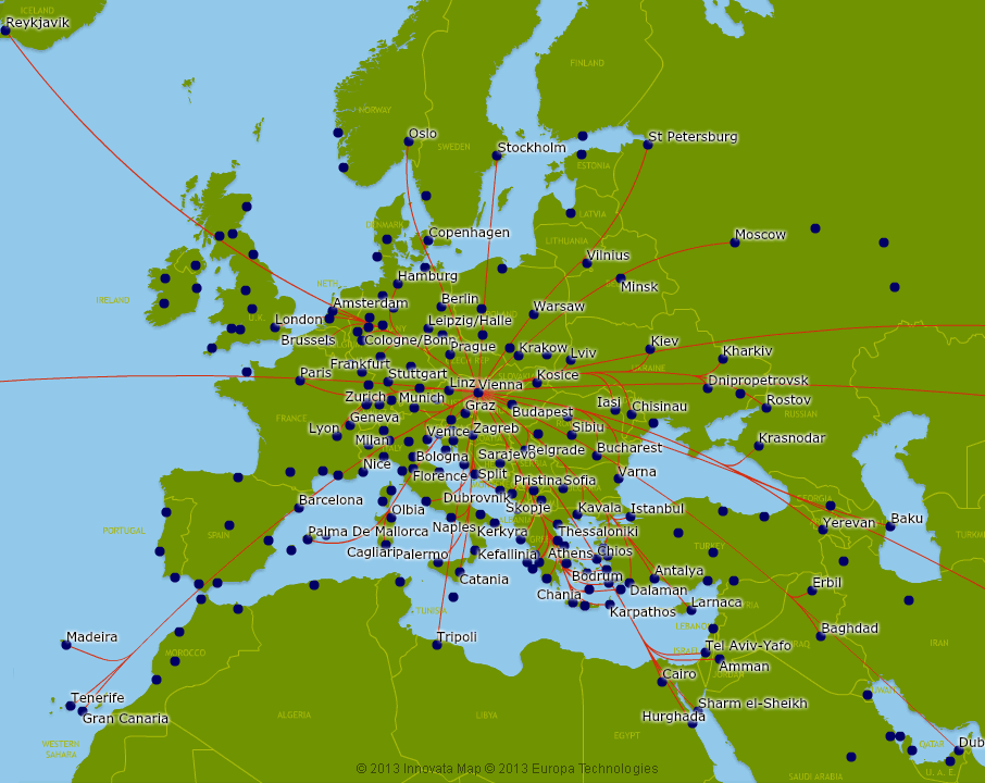 Austrian Airlines Route Map